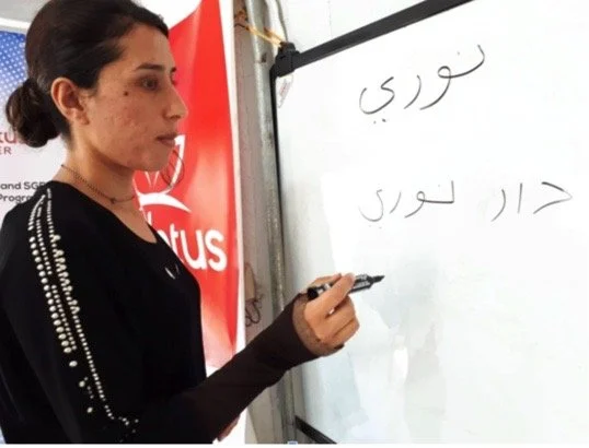 By purchasing the ‘RISE’ print, you will be enabling an ISIS survivor in Kurdistan, northern Iraq, to learn how to read and write – often for the very first time in her life. Most of the women who take the Lotus Flower’s course came from tiny villages where traditional customs and a lack of resources prevented them from attending school. With these women now responsible for earning a living for their family, it is fundamentally important that they have the chance to learn to read and write so they can embark on a career.